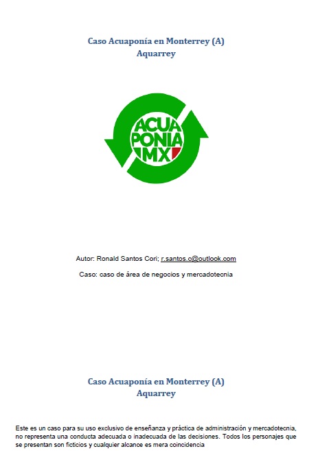 Caso Acuarrey trata sobre una empresa de acuaponía fundada por jóvenes emprendedores y los desafíos de marketing que tienen.